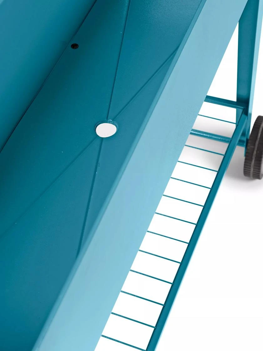 - Powder-coated galvanized steel, PVC wheels